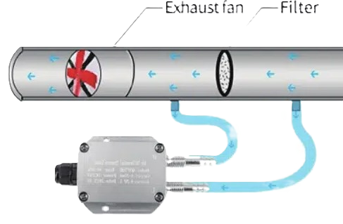 Measure air pressure in HVAC ducts and cleanroom systems.